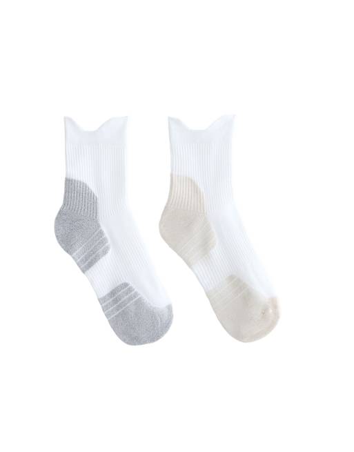 OYSHO - Pakke med 2 par ankel-løbesokker i polyamidblanding i sandfarvet/gråmeleret