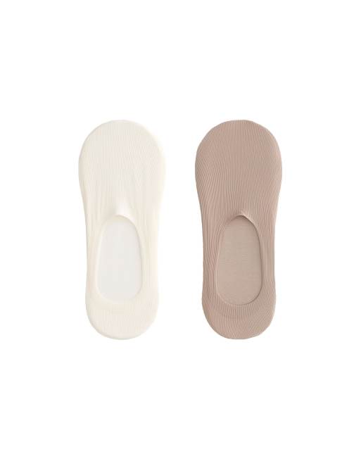 Oysho - Pakke med 2 par usynlige pink/beige sokker med høj udskæring i ribstrikket mikrofiber