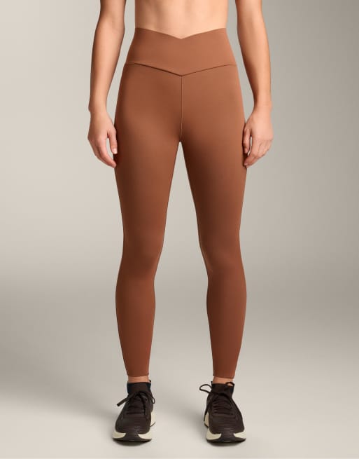 OYSHO - Perfect-adapt - Gyldenbrune ankellange leggings på 65 cm med krydsende V-design i taljen