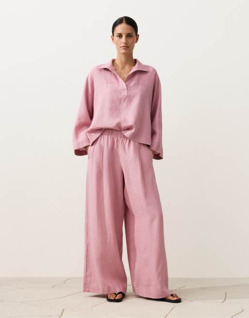 OYSHO - Pink bukser med brede ben i 100% hør