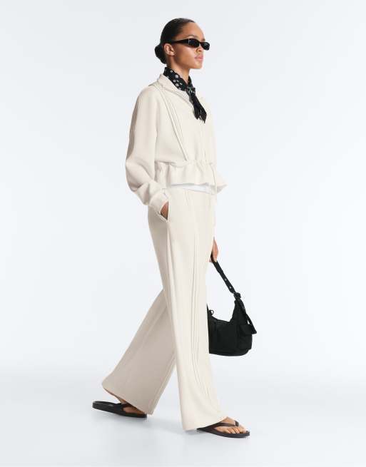 OYSHO - Råhvide bukser med lige ben og sømdetaljer i blød modal