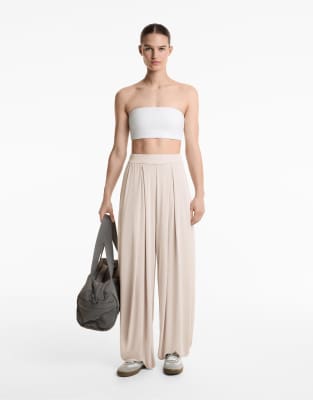 Oysho - Sart minkfarvede flagrende puffede bukser i modalblanding