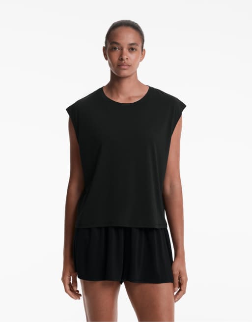 Oysho - Sort ærmeløs T-shirt i modalblanding