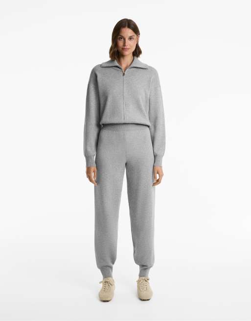 OYSHO - Sort strikket lang jumpsuit med halv lynlås