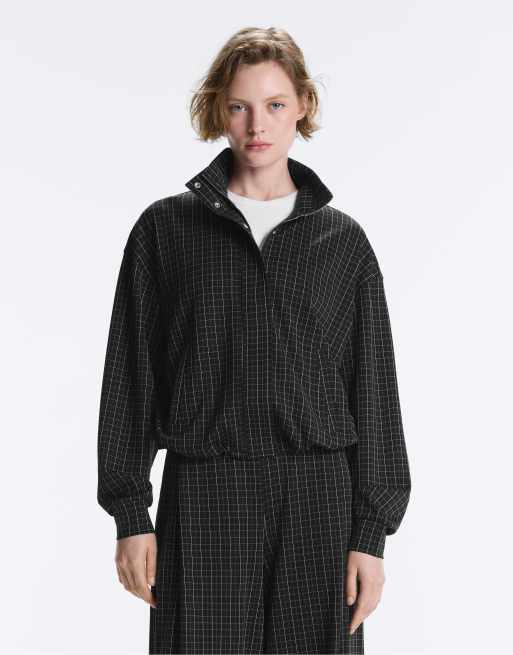 OYSHO - Sort ternet jakke i piqué med høj krave