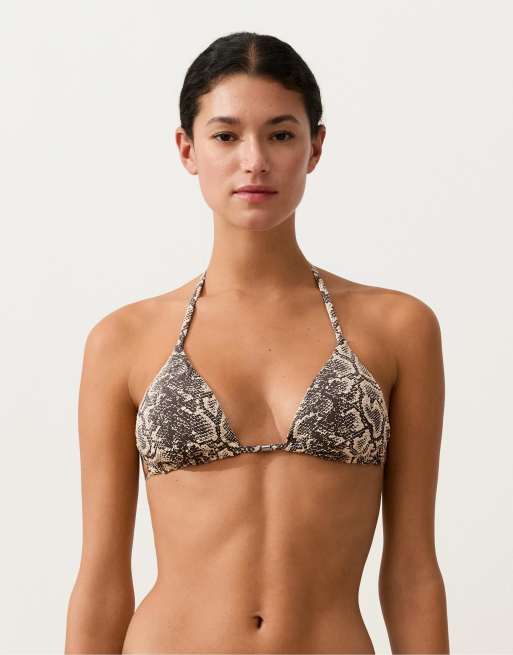 OYSHO - Sort trekantsbikinitop med slangeprint