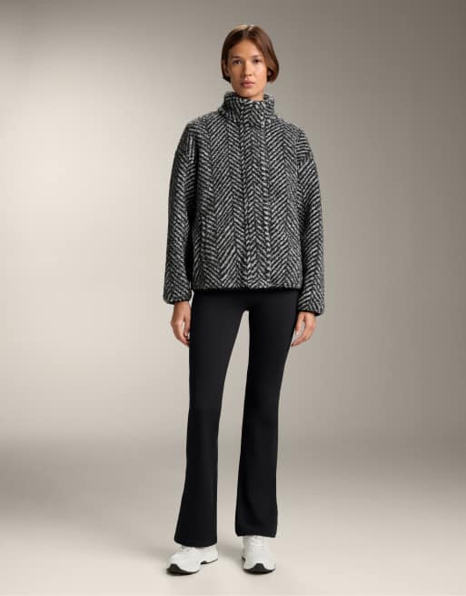 OYSHO - Sort tyk jakke med cocoon-snit i imiteret lammeskind