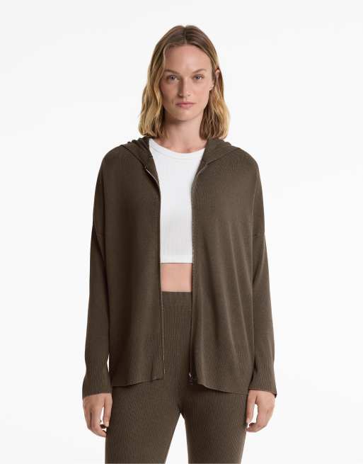 OYSHO - Vasket grå strikket lang jakke