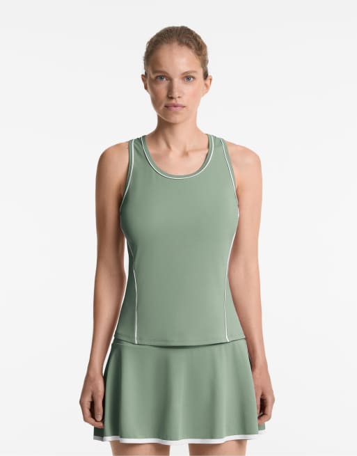 Oysho - Vasket grøn ærmeløs T-shirt med kantdetaljer