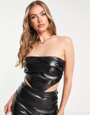 Parisian - Sort bandeau-croptop i imiteret læder - Del af sæt