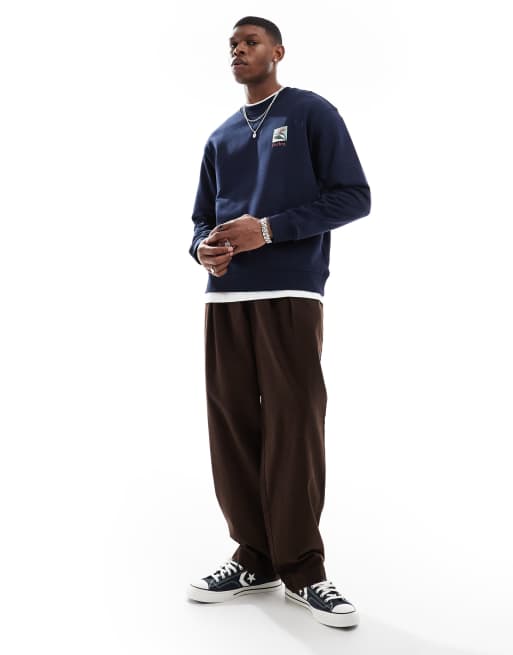 Parlez - Planter - Marineblå sweatshirt med log og rund hals