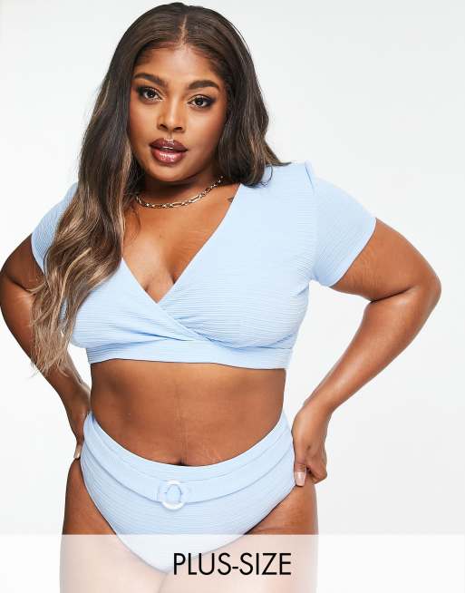 Peek & Beau Curve - Slå-om-bikinitop i blå ribstrik - Kun hos ASOS