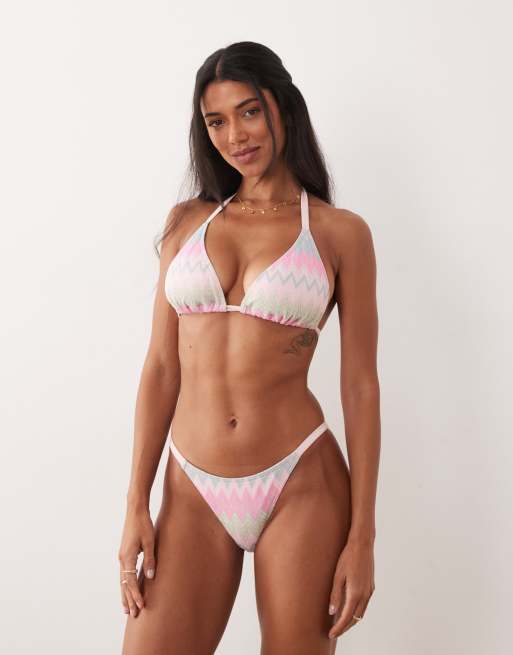 Peek & Beau - Blå og lyserød trekantsbikinitop med chevron-mønster