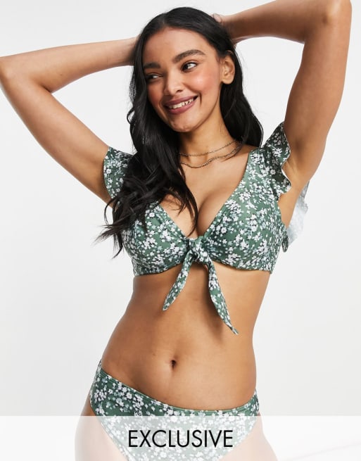 Peek & Beau - Fuller Bust - Blomstret bikinisæt i grønt med bøjle og flæser - Kun hos ASOS