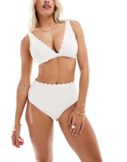 Peek & Beau - Fuller Bust - Hvid bikini med bølgekant og høje spidser i krølstof