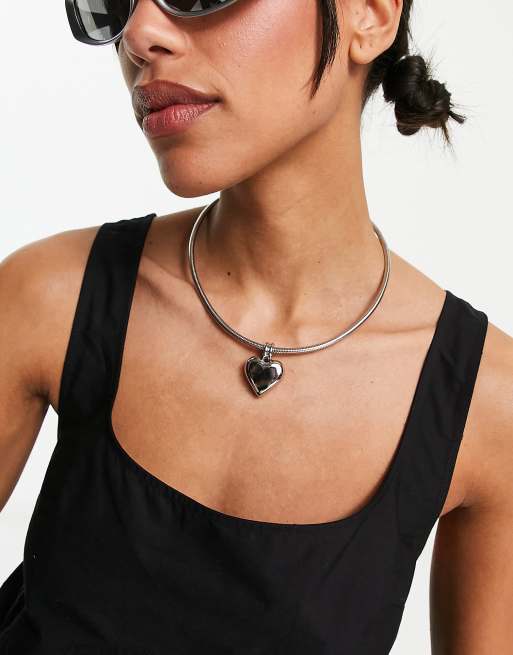 Petit Moments - Sølvfarvet halskæde i rustfrit stål med hjertevedhæng
