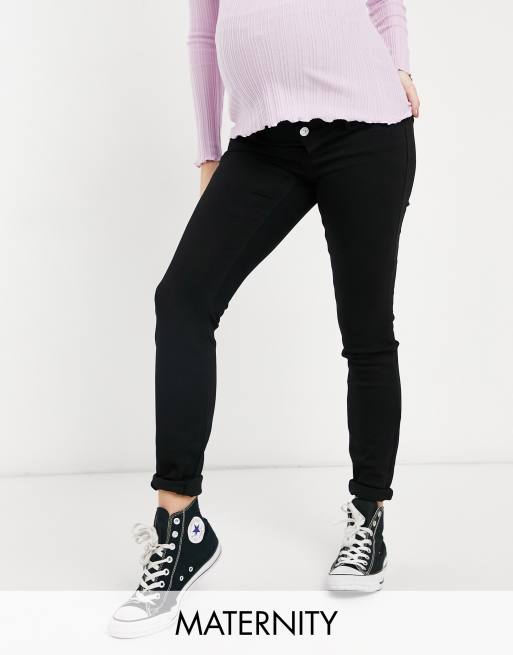 Pieces Maternity - Sorte skinny-jeans med elastisk mavebånd