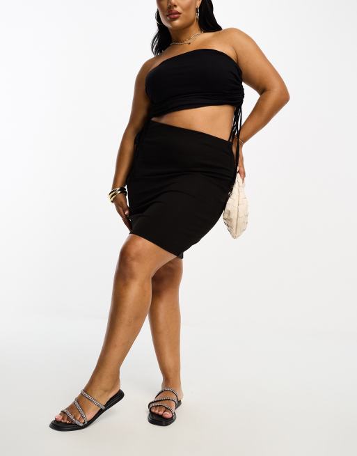 Pieces Curve - Sort højtaljet pencilnederdel