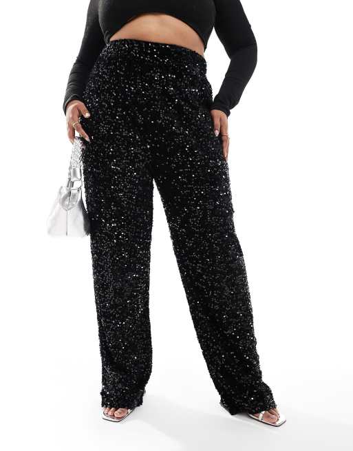 Pieces Curve - Sorte bukser med vidde og pailletter i satin