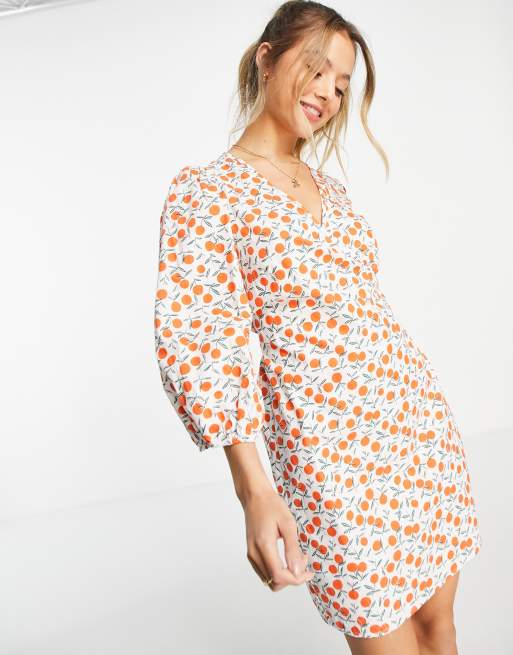 Pieces - 2/4 slå-om-kjole i lys hvid med abrikoser