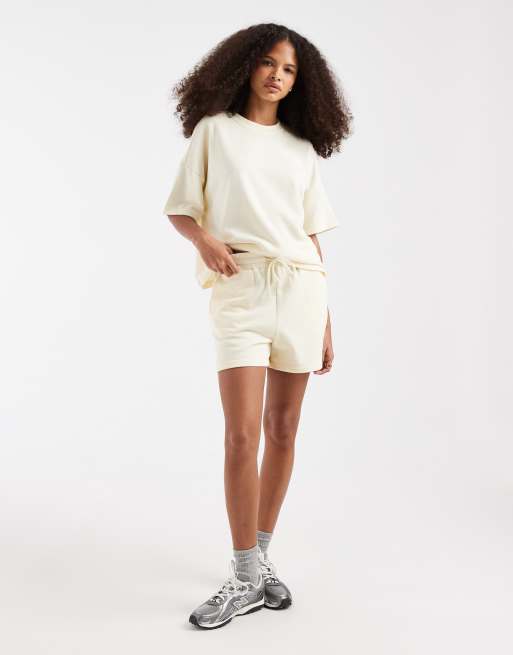 Pieces - Beige højtaljede sweatshorts - Del af sæt