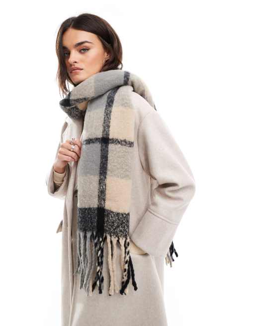 PIECES - Blødt, børstet halstørklæde med brune/sorte tern