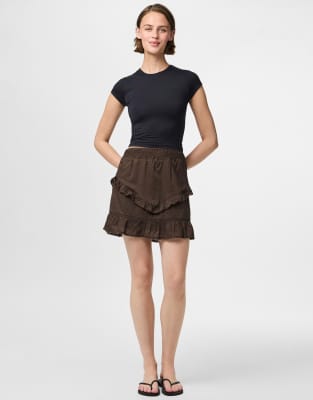 Pieces - Brun mininederdel