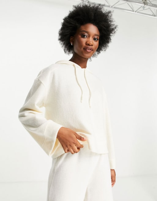 PIECES - Cremefarvet lounge-sæt med hættetrøje og bukser med vide ben