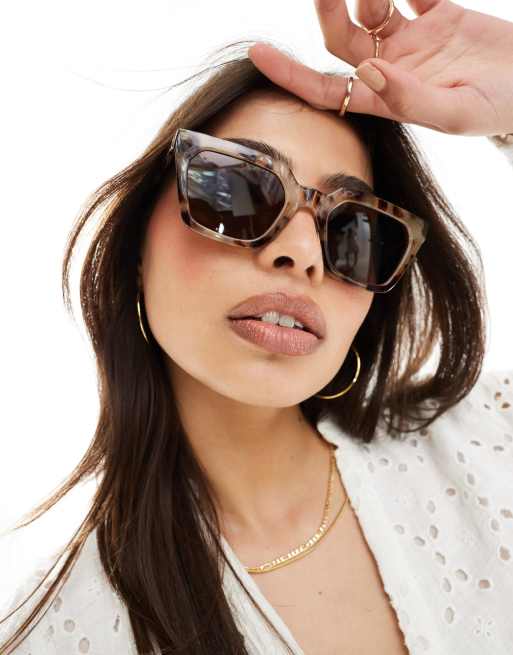 PIECES - Firkantede Cat Eye-solbriller i lys skildpaddefarve