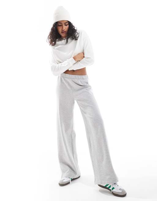 PIECES - Gråmelerede joggingbukser med brede ben og cremehvid sidestribe - Del af sæt
