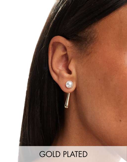 Pieces - Guldfarvede øreringe i dråbeform med perle