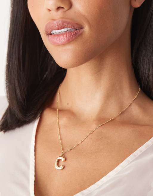 PIECES - Guldfarvet halskæde med 'C'-vedhæng i boblestil