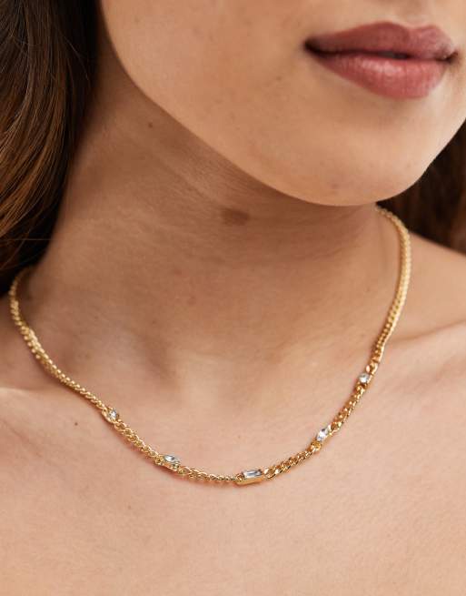 PIECES - Gyldne hoop-øreringe med baguette-stendetaljer