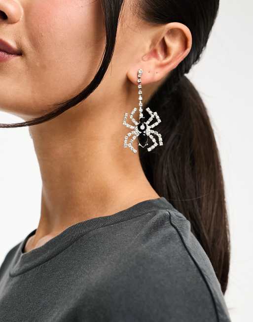 PIECES - Halloween - Sølvfarvede hængeøreringe med edderkoppedesign med rhinsten