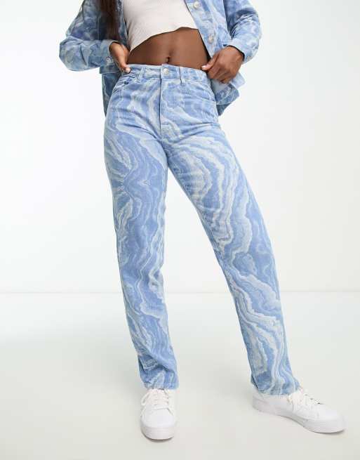 PIECES - Jeans med lige ben i blåt marmorprint - Del af sæt
