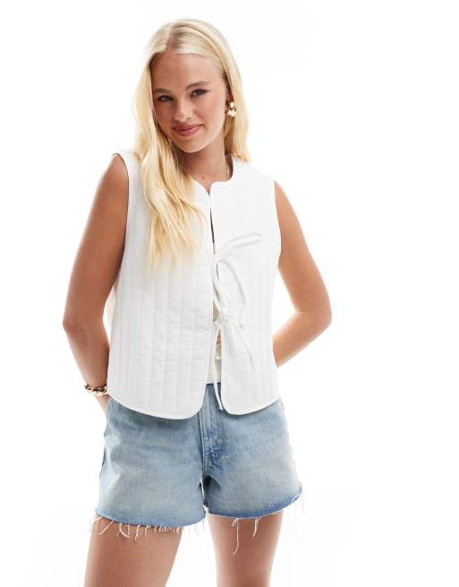 Pieces - Let, vatteret og hvid sommervest med bindefront