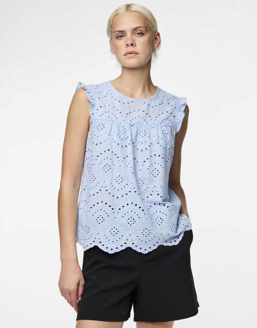 Pieces - Lyseblå top med flæsedetalje
