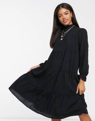 Pieces - Midikjole med høj hals og lagdelt nederdel i sort
