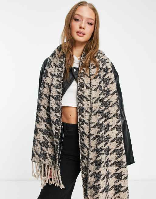 Pieces - Oversized, superblødt halstørklæde med frynser i brune pepita-tern