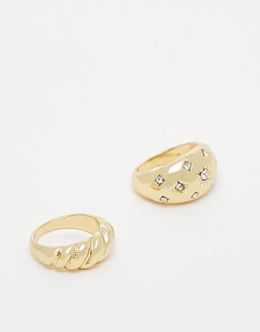 PIECES - Pakke med 2 guldfarvede chunky ringe - Kun hos ASOS