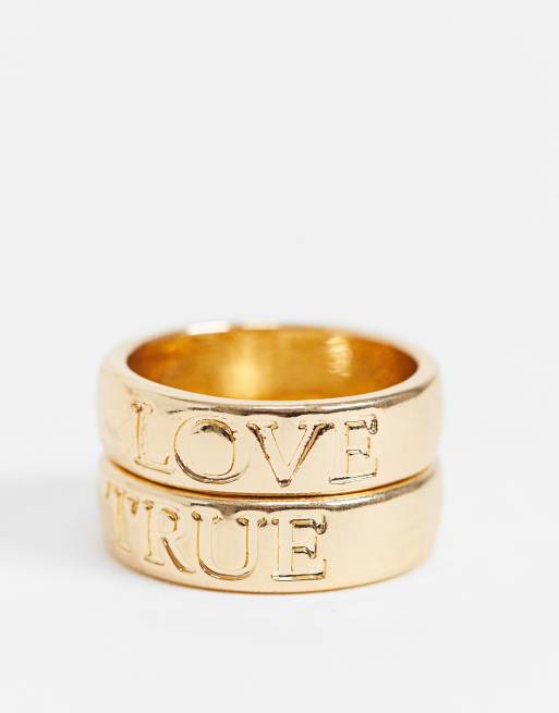Pieces - Pakke med 2 guldfarvede 'True Love'-ringe