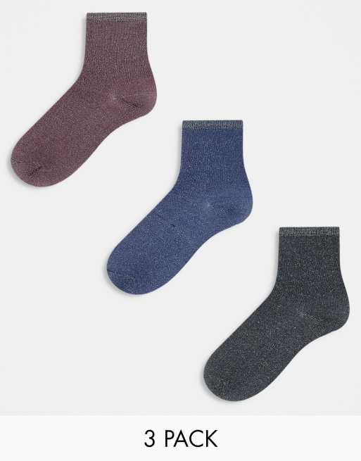 PIECES - Pakke med 3 par sokker med glimmer i vinterfarver