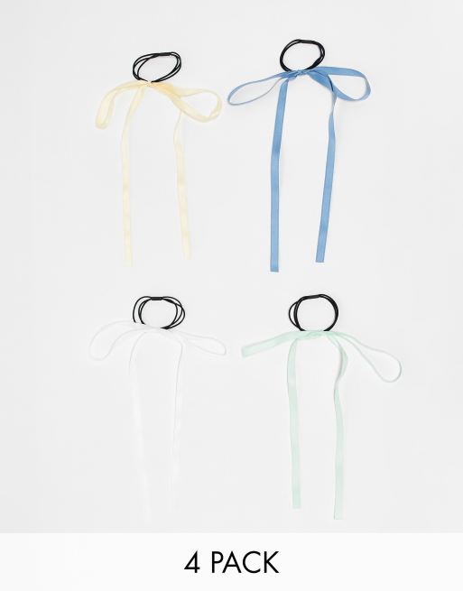 PIECES - Pakke med 4 hårelastikker med sløjfedetaljer i forskellige pastelfarver