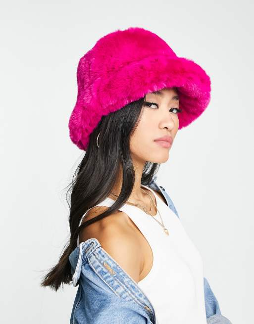 Pieces - Pink bøllehat i imitetet pels - Kun hos ASOS