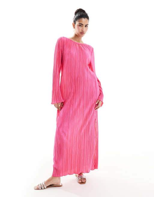 PIECES - Plisseret maxikjole med sideslidser i klar pink