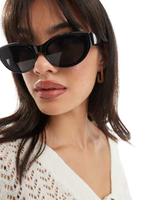 PIECES - Smalle ovale Cat Eye-solbriller i sort