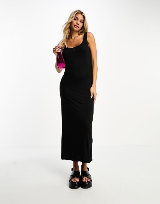 Pieces - Sort maxikjole med dyb rund hals