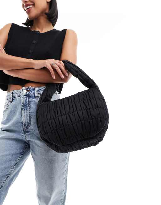 Pieces - Sort, quiltet og tekstureret skuldertaske
