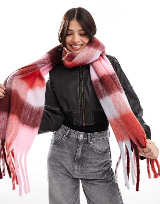 Pieces - Superblødt halstørklæde med frynser og tern i varme efterårsfarve