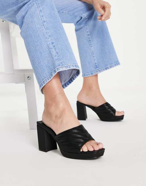 Pimkie - Sorte mules med hæl og vatteret detalje